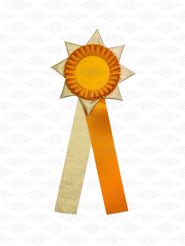 Denne elegante enkelt-roset er kombineret med en stjerne og et bånd i guld-metallic.
